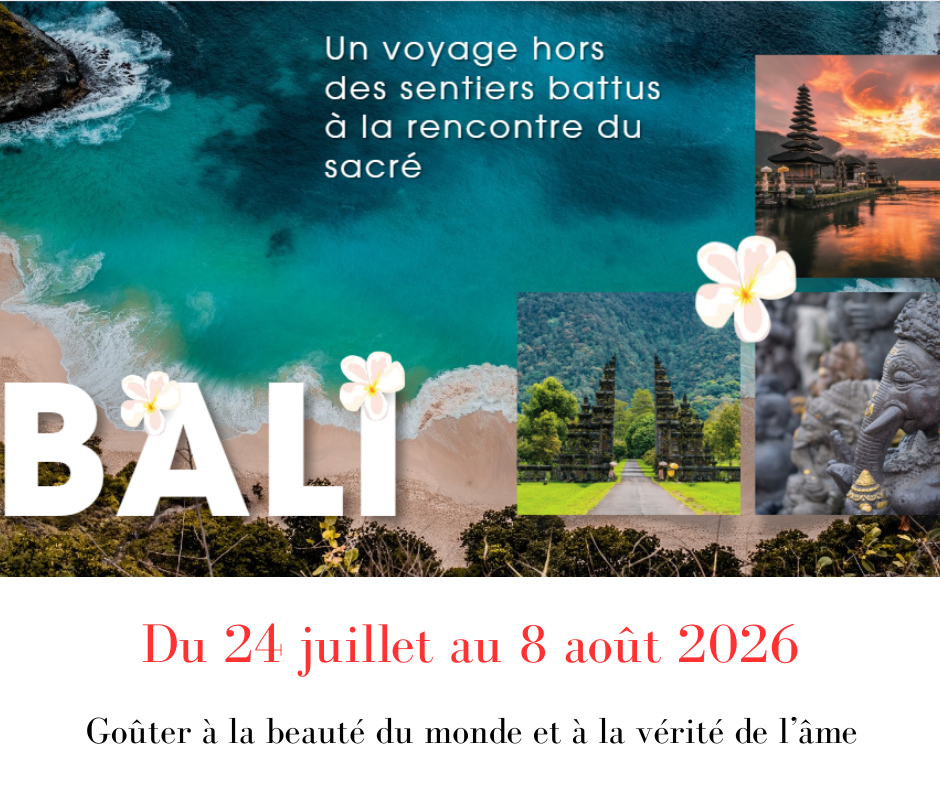 2 semaines d’exploration spirituelle sur l’île magique de Bali. Au programme : découverte des temples et connexions aux baguettes, méditations guidées par les prêtres locaux, soins avec des guérisseurs et 3 jours en immersion dans la jungle avec une chamane, à la rencontre de son don. Ce voyage est une invitation à une profonde reconnexion à vous-même.