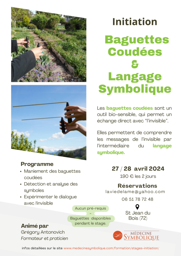 L’enseignement de la Médecine Symbolique repose entièrement sur un échange avec “l’Invisible” par l’intermédiaire d’un outil bio-sensible, les baguettes coudées.