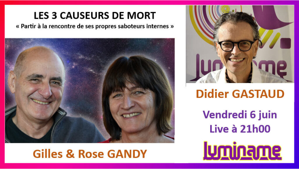 A l’occasion d’un webinaire en live, organisé par Luminame, Gilles et Rose parleront de leur livre et évoqueront les 3 « causeurs de mort », ces influences limitantes telles que décrites dans l’enseignement taoïste. Elles sont tellement d’actualité !